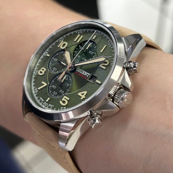 Orien Solartech Masculio Cronógrafo MBSCC071 Verde Prata