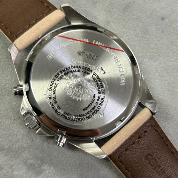 Funções: solartech com autônomia de 6 meses, taquímetro, indicador am/pm, calendário, mostrador em camadas