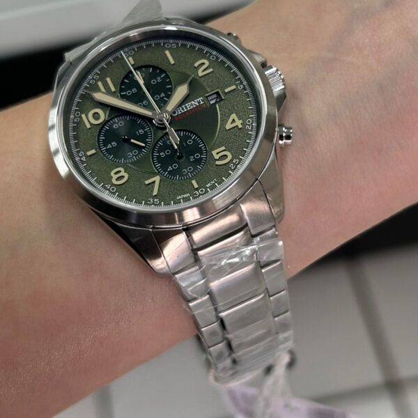 Orien Solartech Masculio Cronógrafo MBSCC071 Verde Prata