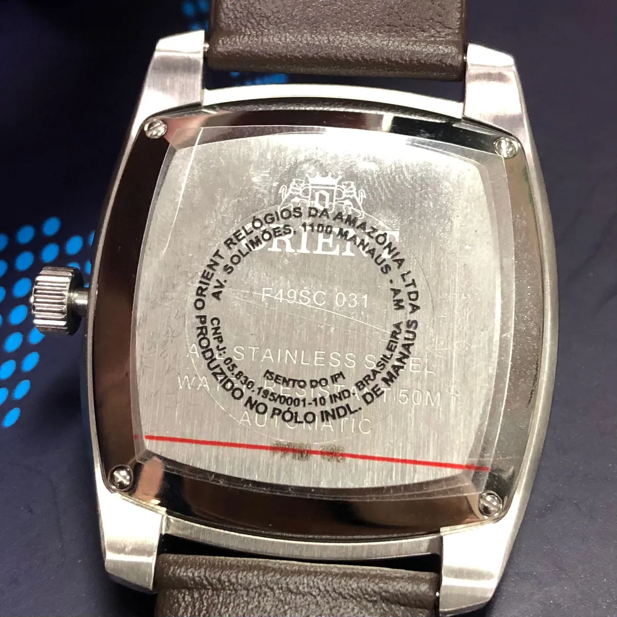 - Mecanismo: Automático (Calibre F49) – Enrolamento automático pelo pulso