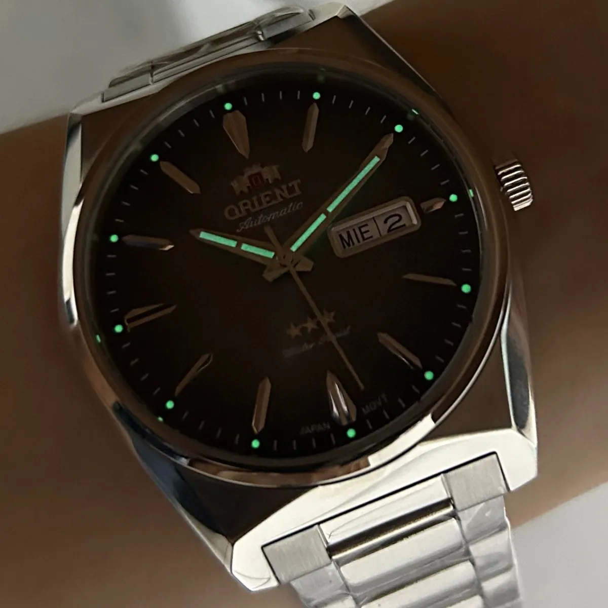 Orient F49SS013NH é um relógio masculino da linha "3 Estrelas", conhecida por sua confiabilidade mecânica e estilo atemporal. Este modelo específico destaca-se por possuir uma caixa de dimensões maiores que a média da categoria, conferindo uma presença de pulso mais moderna e robusta.