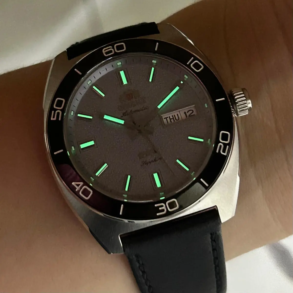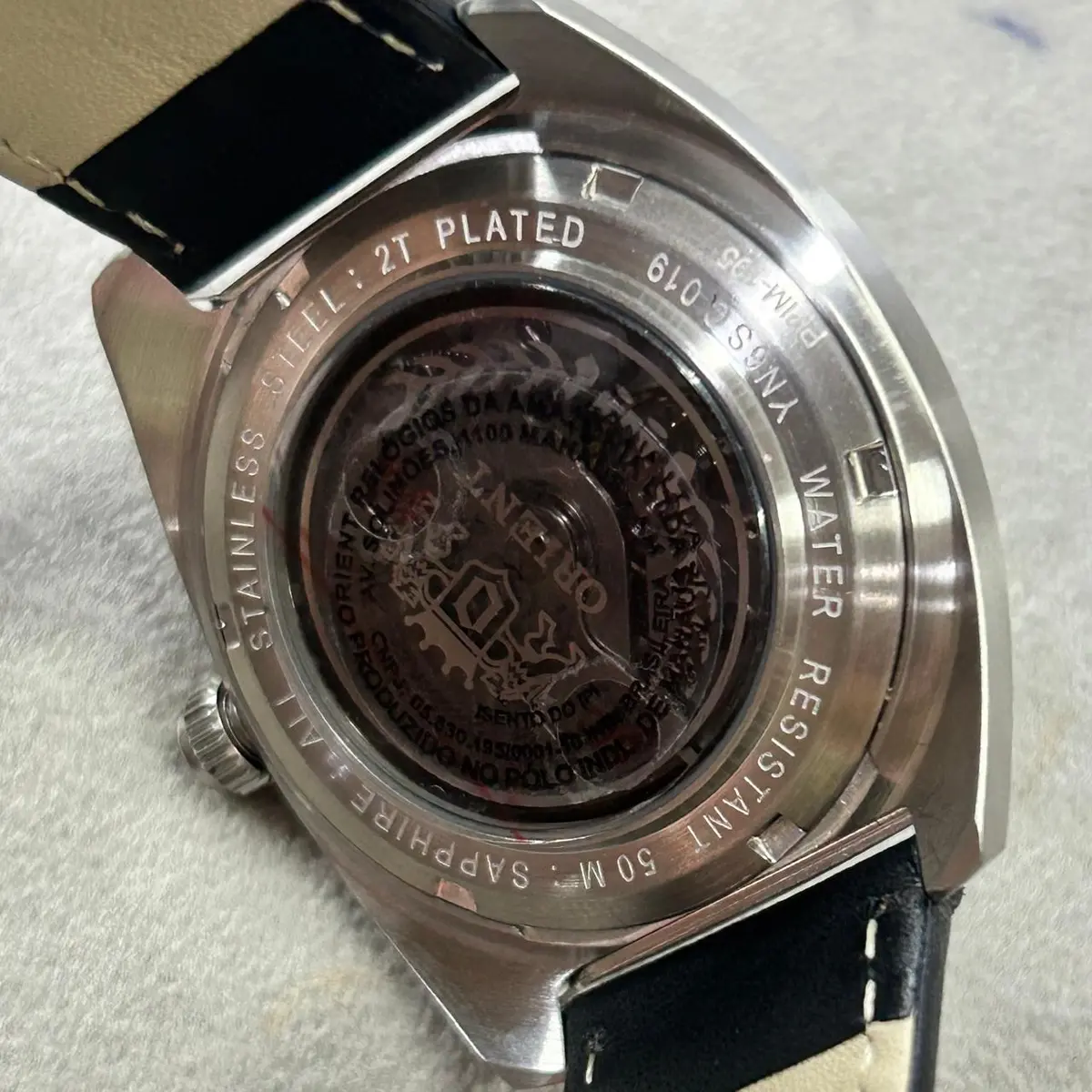 Equipado com o robusto movimento automático Orient Calibre YN6, este relógio oferece funcionalidades que encantam colecionadores: