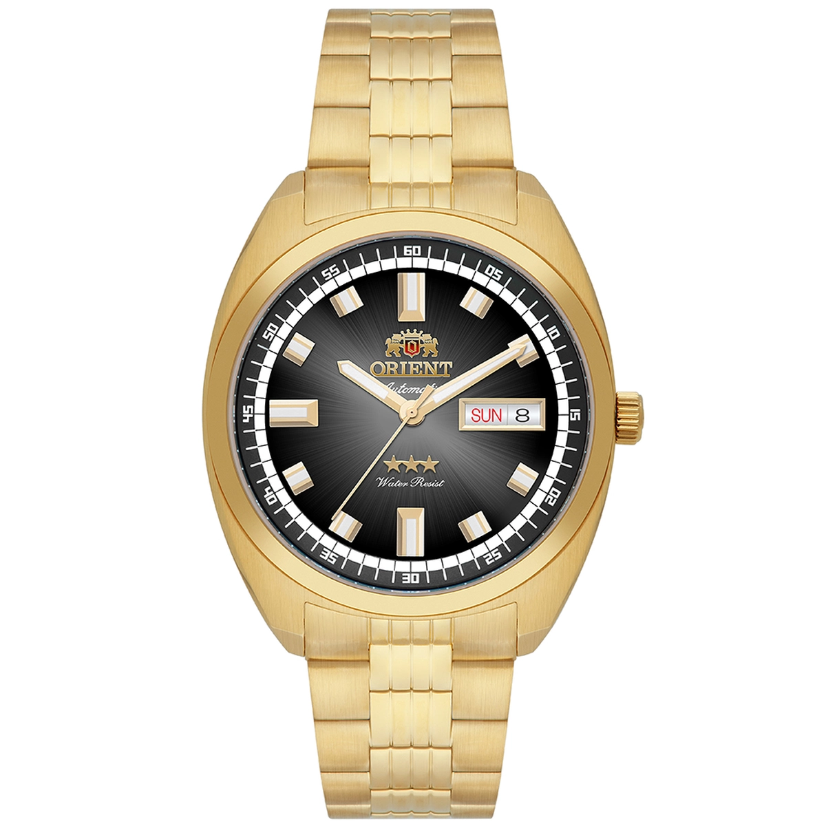 Orient YN6GG004 é um relógio automático masculino de estilo retrô em aço dourado, que combina o charme da linha Heritage 3 Estrelas com a resistência superior do cristal de safira e vedação de 100 metros.