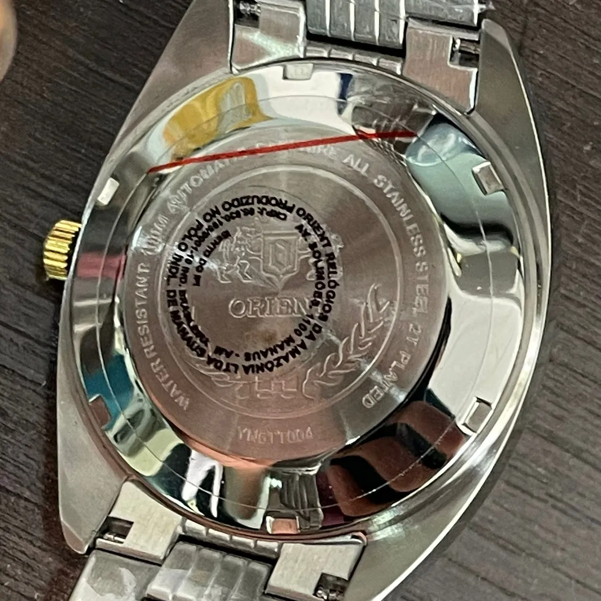 - Mostrador: Geralmente apresenta o logotipo clássico da Orient com as três estrelas e acabamento "sunray" (raios de sol), que reflete a luz de forma circular.