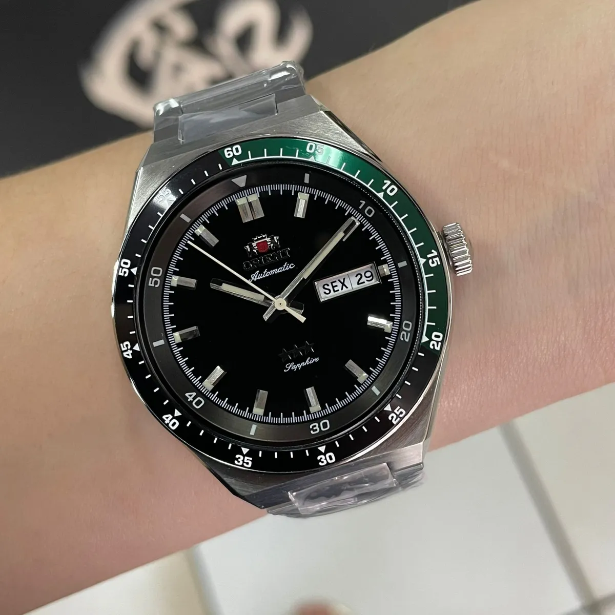 - Vidro de Safira: Diferente dos modelos de entrada que usam cristal mineral, este modelo é equipado com cristal de safira, que é altamente resistente a riscos e arranhões.