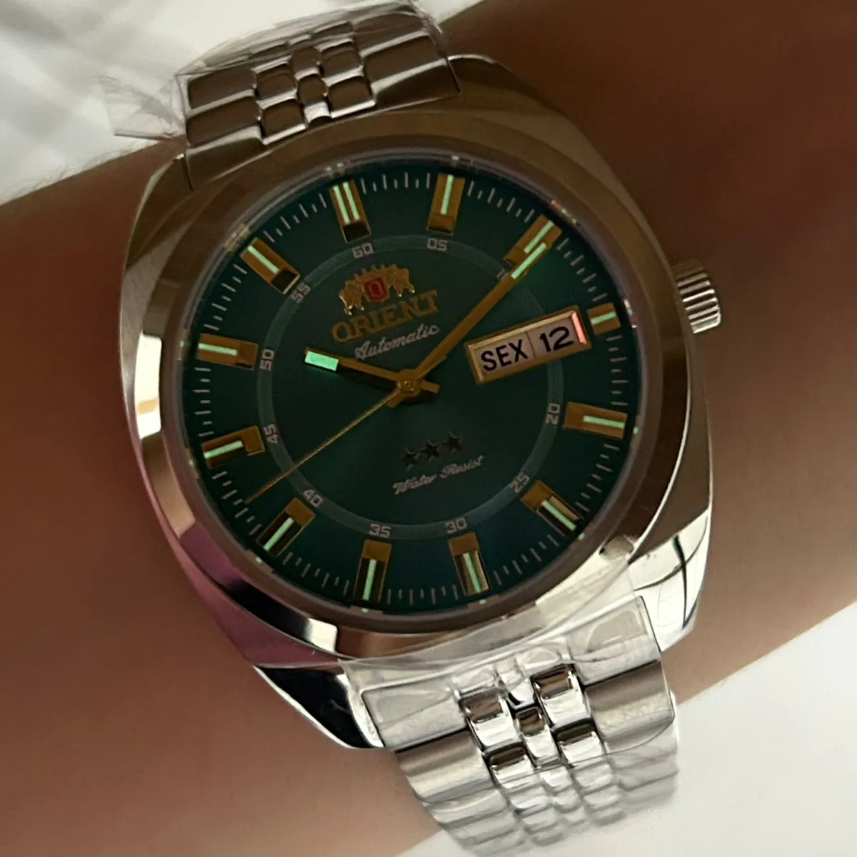 Orient 3 Estrelas Automático Heritage YN6SS005 verde agua