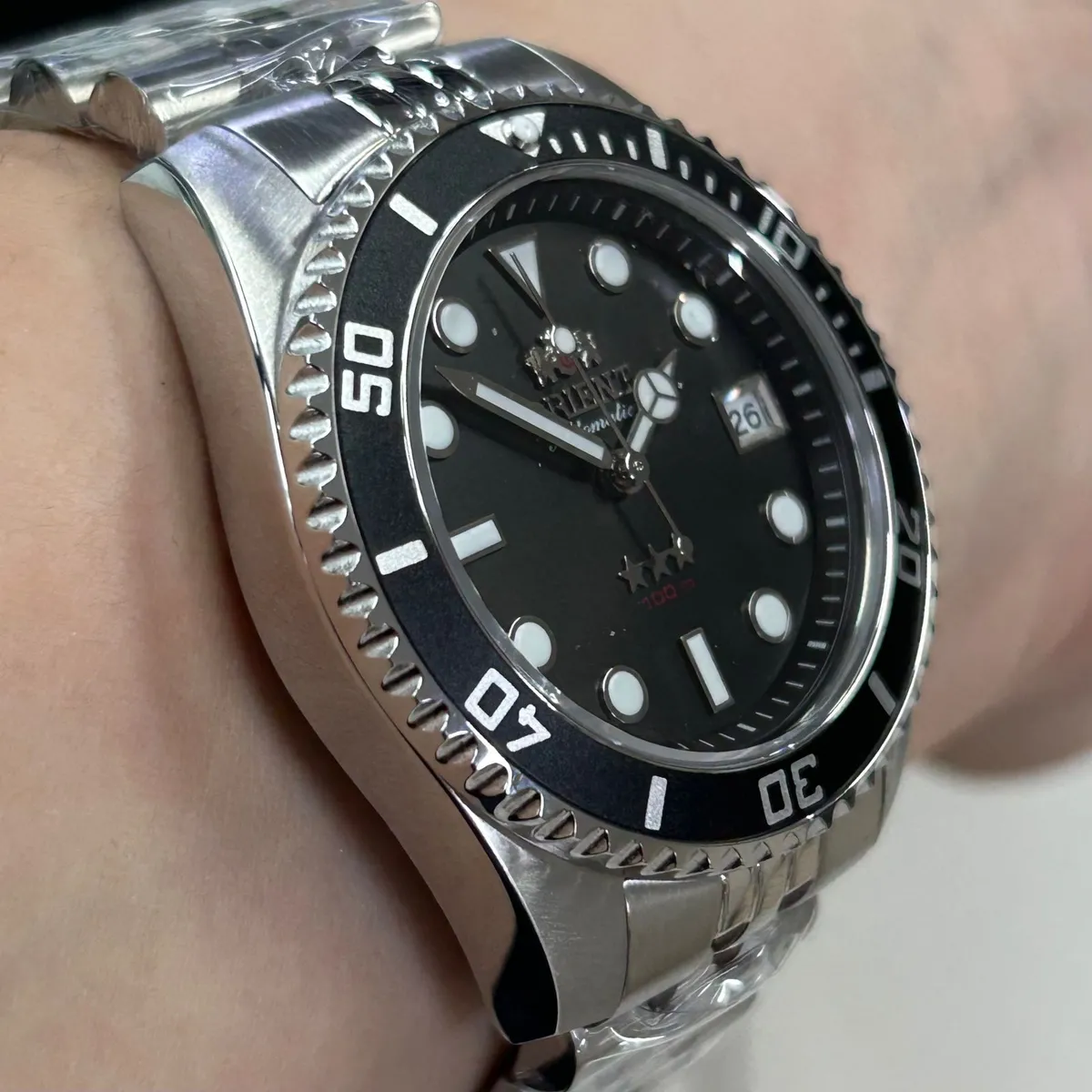 Relógio Orient Automático YN6SS023 Submariner 39mm: Cristal de Safira, calibre com hacking, pulseira jubilee e 100m de resistência. Estilo e precisão.