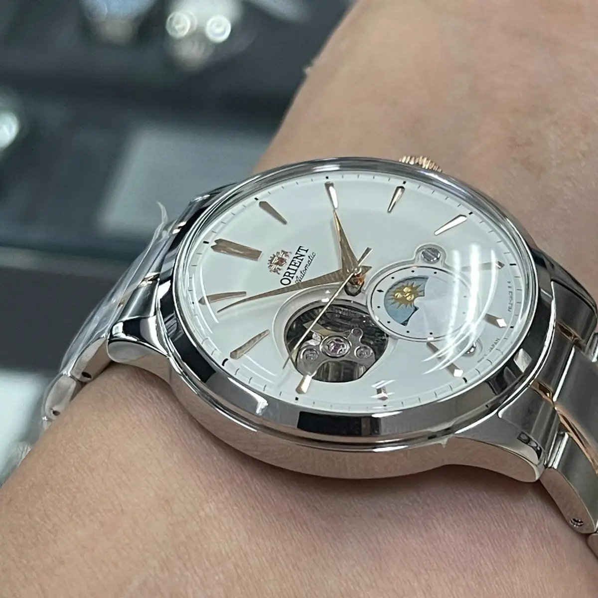 Orient Automático Bambino Sun & Moon Open Heart RAAS0101S10B