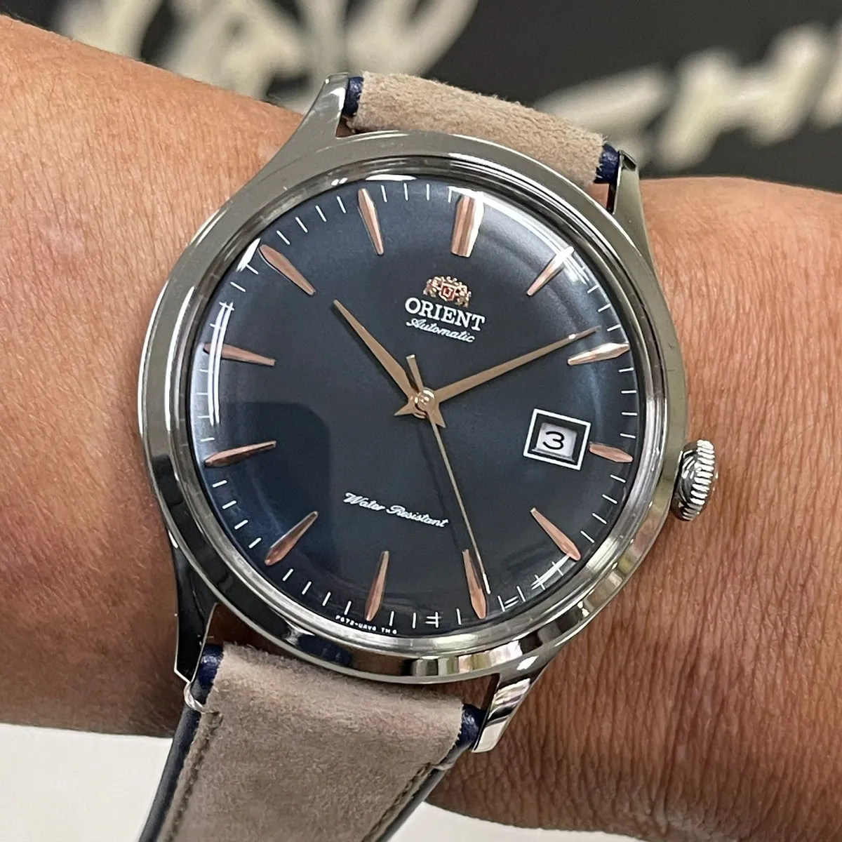 O é a evolução de um ícone. Reconhecido mundialmente como um dos melhores dress watches de entrada, este modelo equilibra a herança clássica da Orient Japan com toques contemporâneos de cor e textura. O grande diferencial desta geração é o mostrador azul meia-noite com efeito gradiente, que ganha profundidade sob o icônico vidro mineral abobadado (domed).