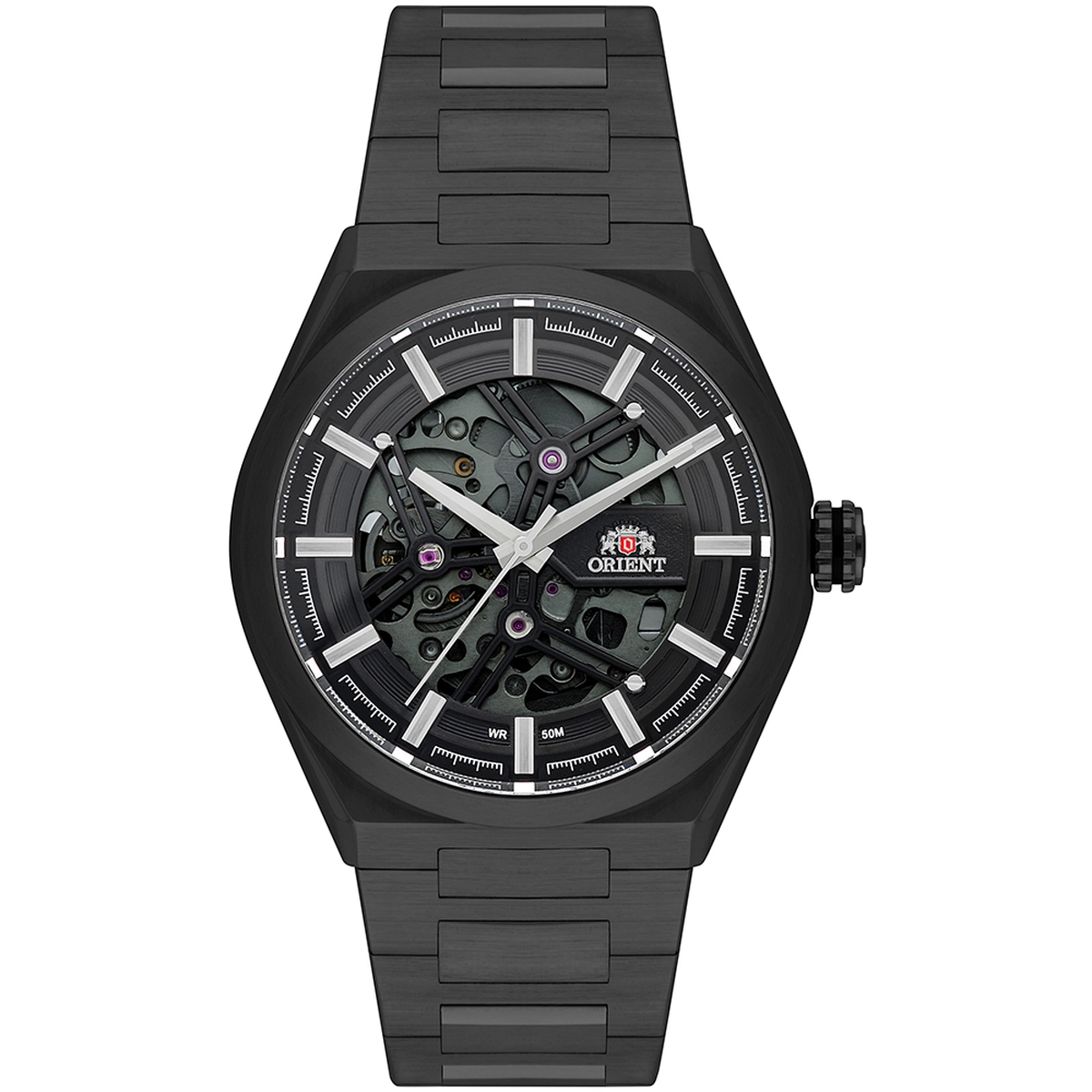 Orient NH7YY001 é um relógio masculino de estilo clássico e sofisticado, pertencente à linha de automáticos da marca. O seu maior diferencial é o design Skeleton (Esqueleto), que permite visualizar o funcionamento das engrenagens e do balanço do movimento tanto pela frente (através do mostrador vazado) quanto pelo verso (fundo transparente).