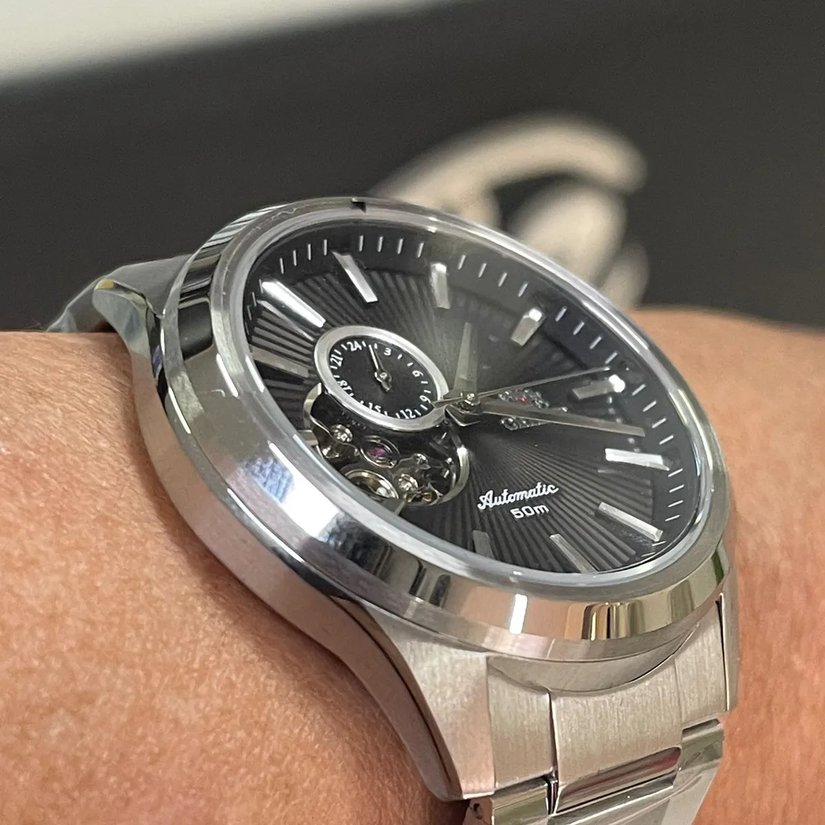 Orient NH3SS005 é um relógio masculino de estilo clássico e sofisticado, pertencente à linha de automáticos da marca. O seu maior diferencial visual é o design Open Heart (coração aberto), que exibe parte do mecanismo em funcionamento através de uma abertura circular no mostrador.