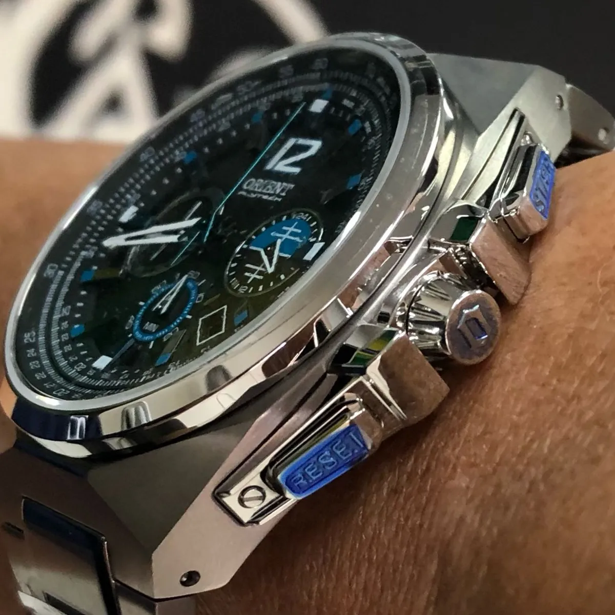 Relogio Orient Flytech MBTTC017 é um relógio solar de titânio com cristal de safira, cronógrafo e régua de aviação, unindo leveza e resistência militar.