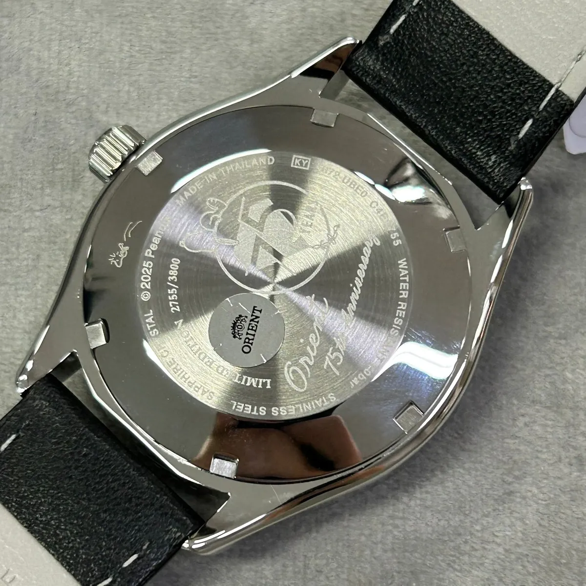 - Fundo da Caixa (Caseback): Gravado com ilustrações do Woodstock, a inscrição comemorativa "Orient 75th Anniversary" e o número de série individual da edição limitada.