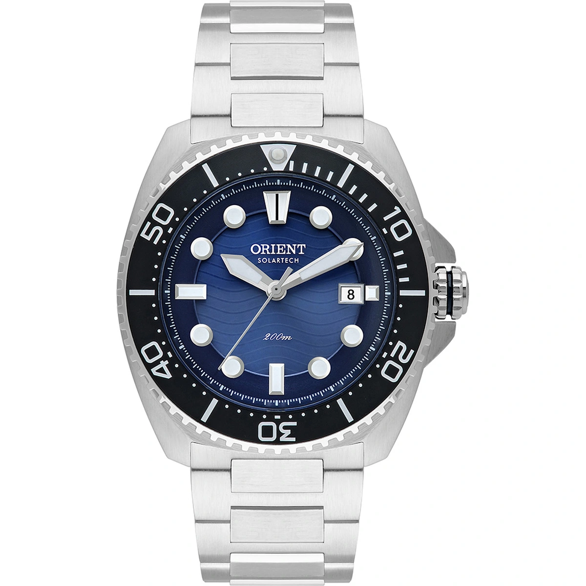 Relógio Orient Solartech MBSS1471: Diver solar 200m em aço, calibre VS752, autonomia 6 meses e design robusto. Compre na Taniguchi Relógios com garantia.