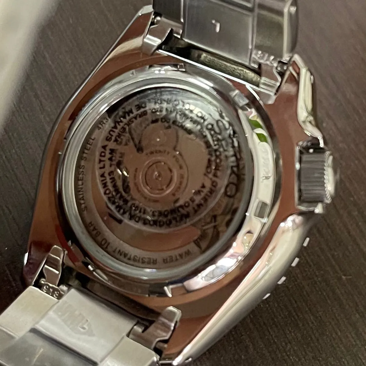 - Movimento: Calibre mecânico 4R36. É um movimento automático que permite corda manual e possui a função de parada do segundo (hacking) para ajuste preciso da hora.