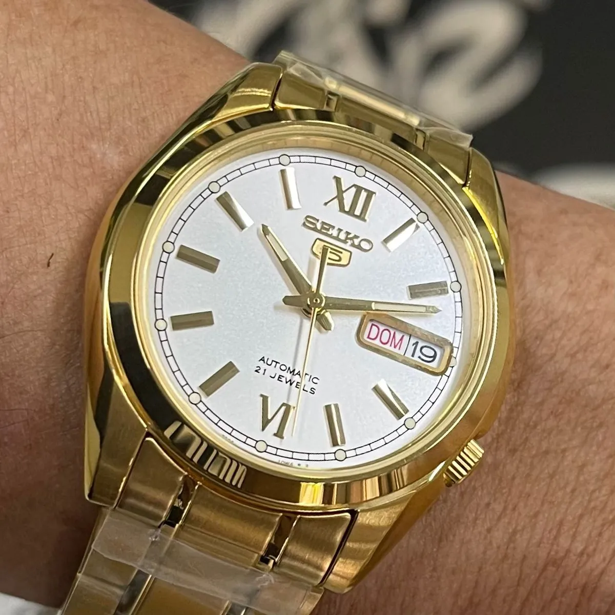 Seiko 5 sports clássico Dourado SNKL58B1 Branco