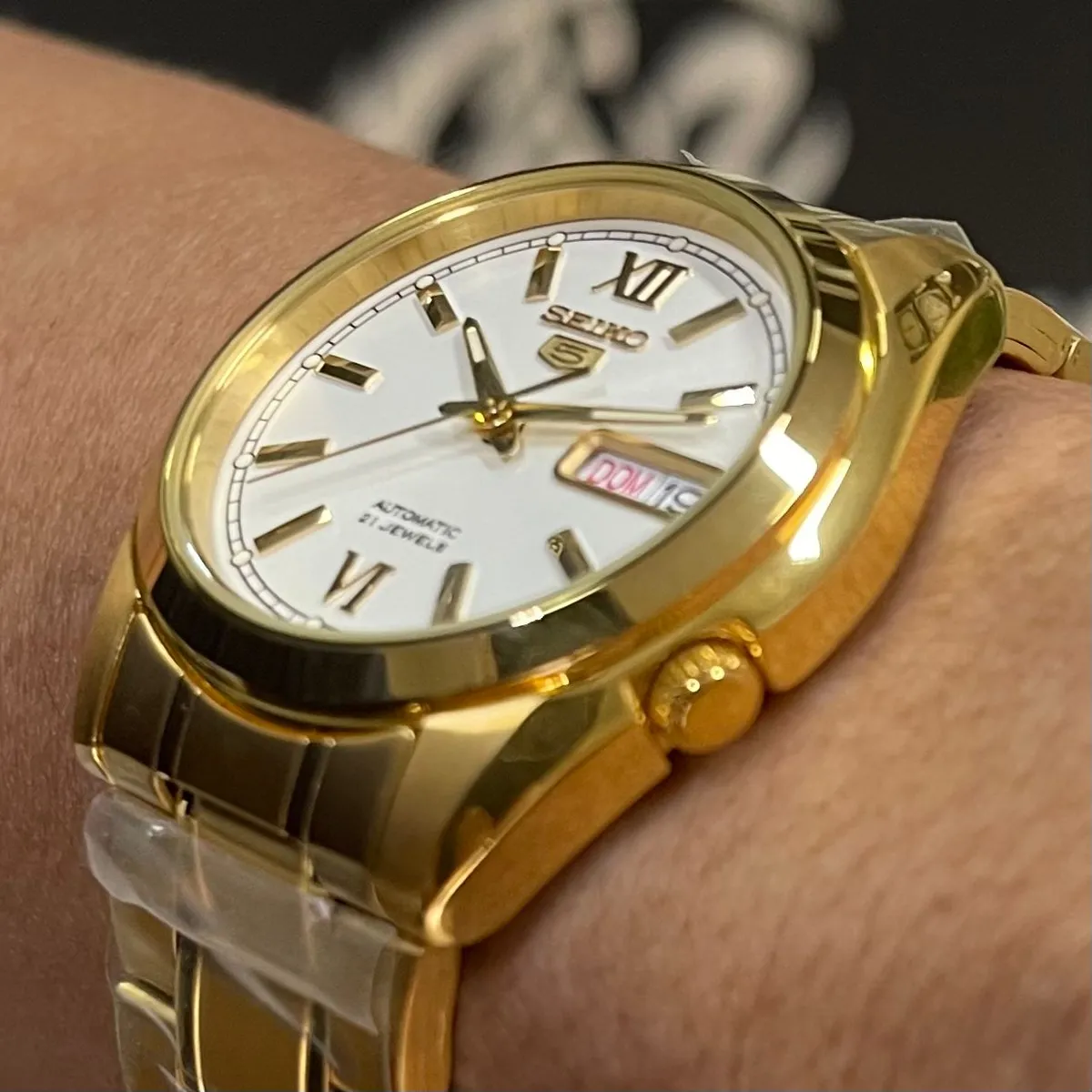 Adicione o brilho e a sofisticação do dourado ao seu pulso com o Seiko 5 SNKL58B1. Garanta o seu agora na Taniguchi Relógios!