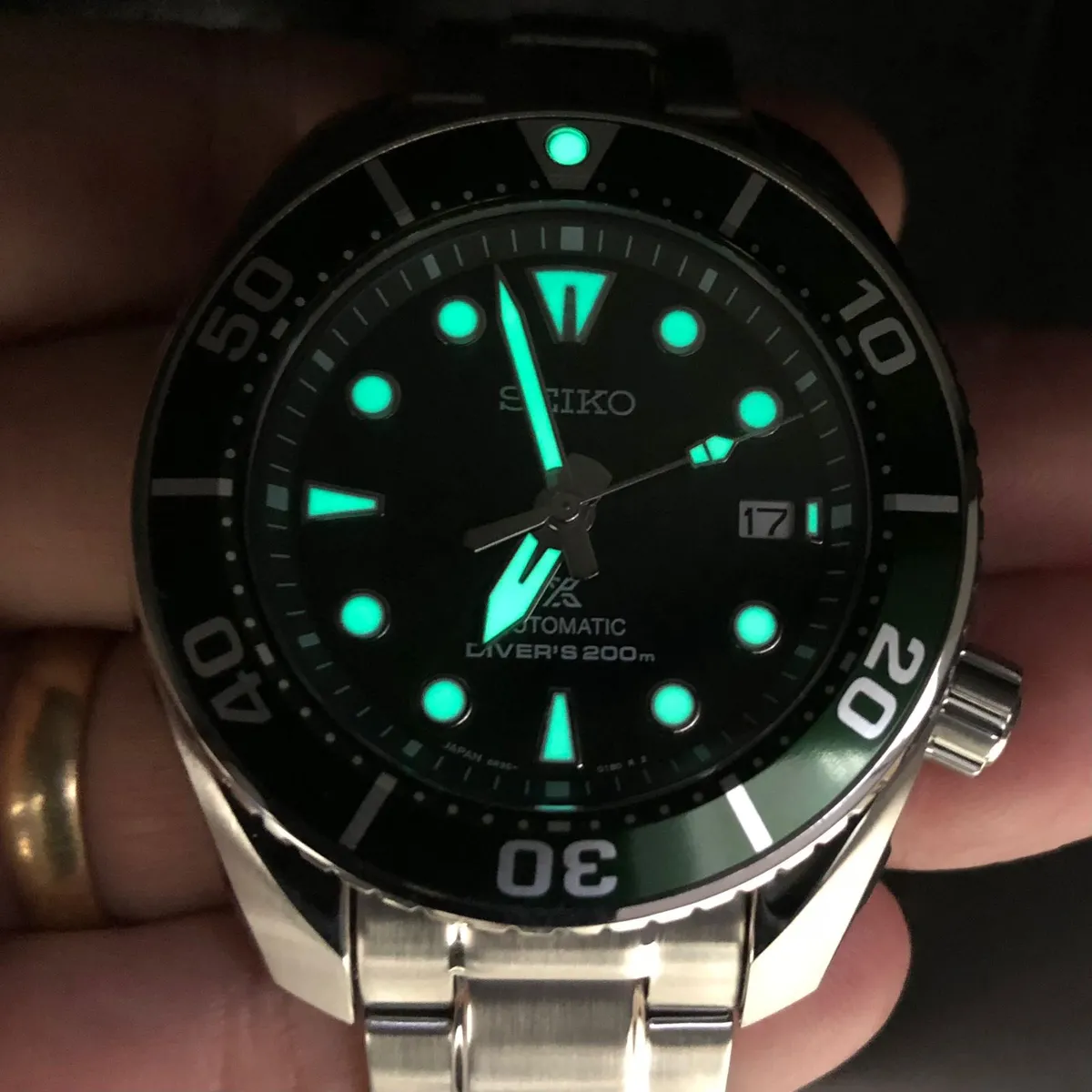 Relógio Seiko Prospex Sumo Verde SPB103J1 automático com vidro de safira, reserva de marcha de 70 horas e resistência à água de 200 metros.