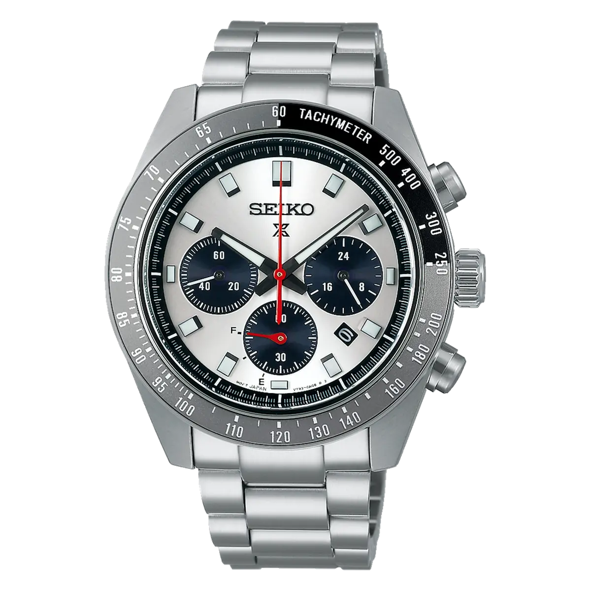 O Seiko Speedtimer SSC911 foi projetado para quem valoriza a história da cronometragem esportiva. Seu bezel com escala taquimétrica em dois tons (preto e cinza) e o mostrador com acabamento sunray prateado criam um contraste sofisticado. Os ponteiros e indicadores possuem Lumibrite de alta performance, garantindo que o tempo seja visível mesmo nas condições mais desafiadoras, enquanto o design dos botões "pump" reforça o estilo vintage.